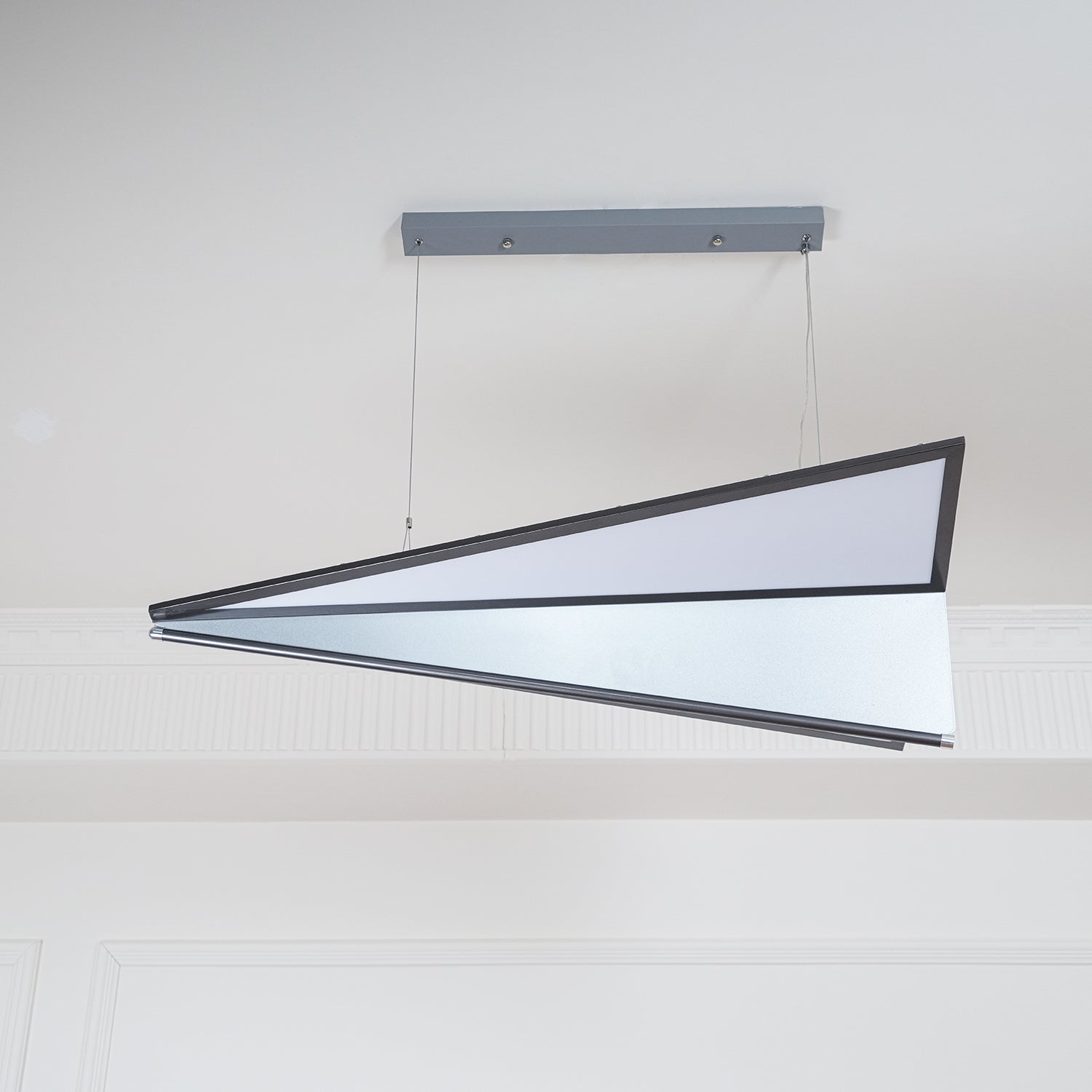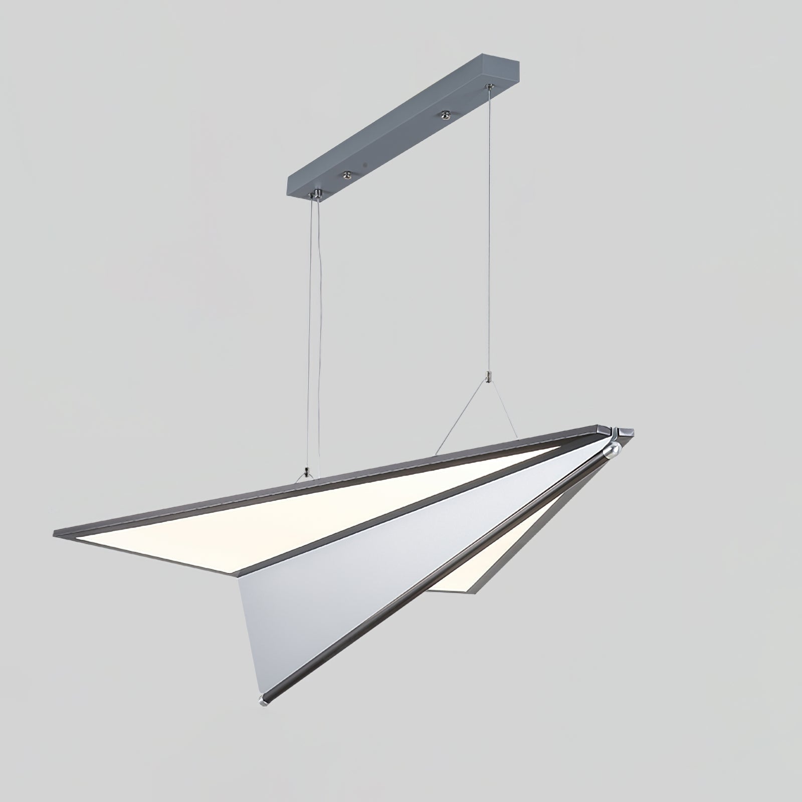 The Airplane Pendant Light is inspired by the aerodynamic elegance of an airplane in flight. Crafted from durable metal and sleek acrylic, this innovative design brings a modern touch to any space. Its unique shape and clean lines create a sophisticated focal point, perfect for adding a contemporary edge to your home or office decor.