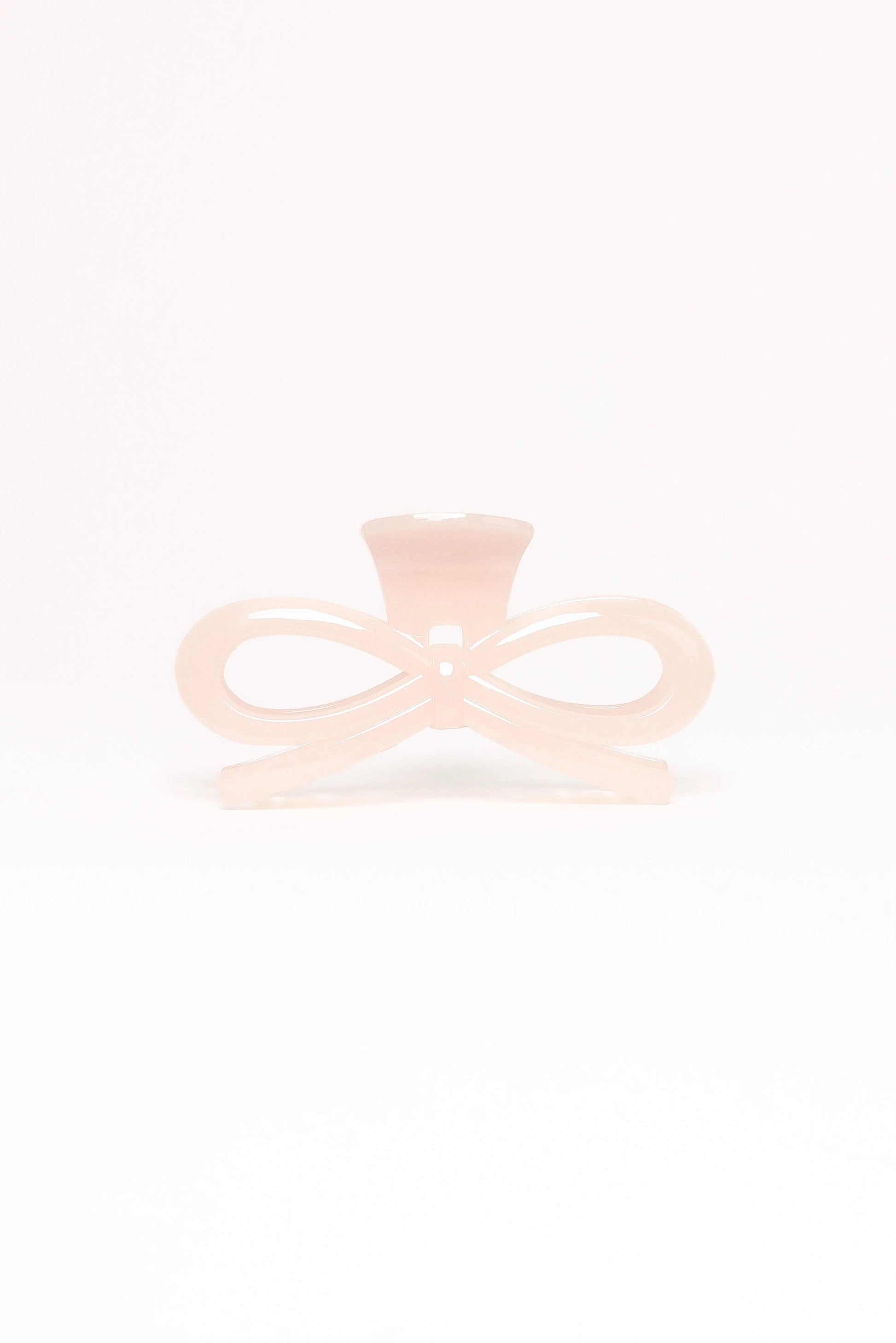 Elegant pink claw clip with a stylish bow accent for secure hold.