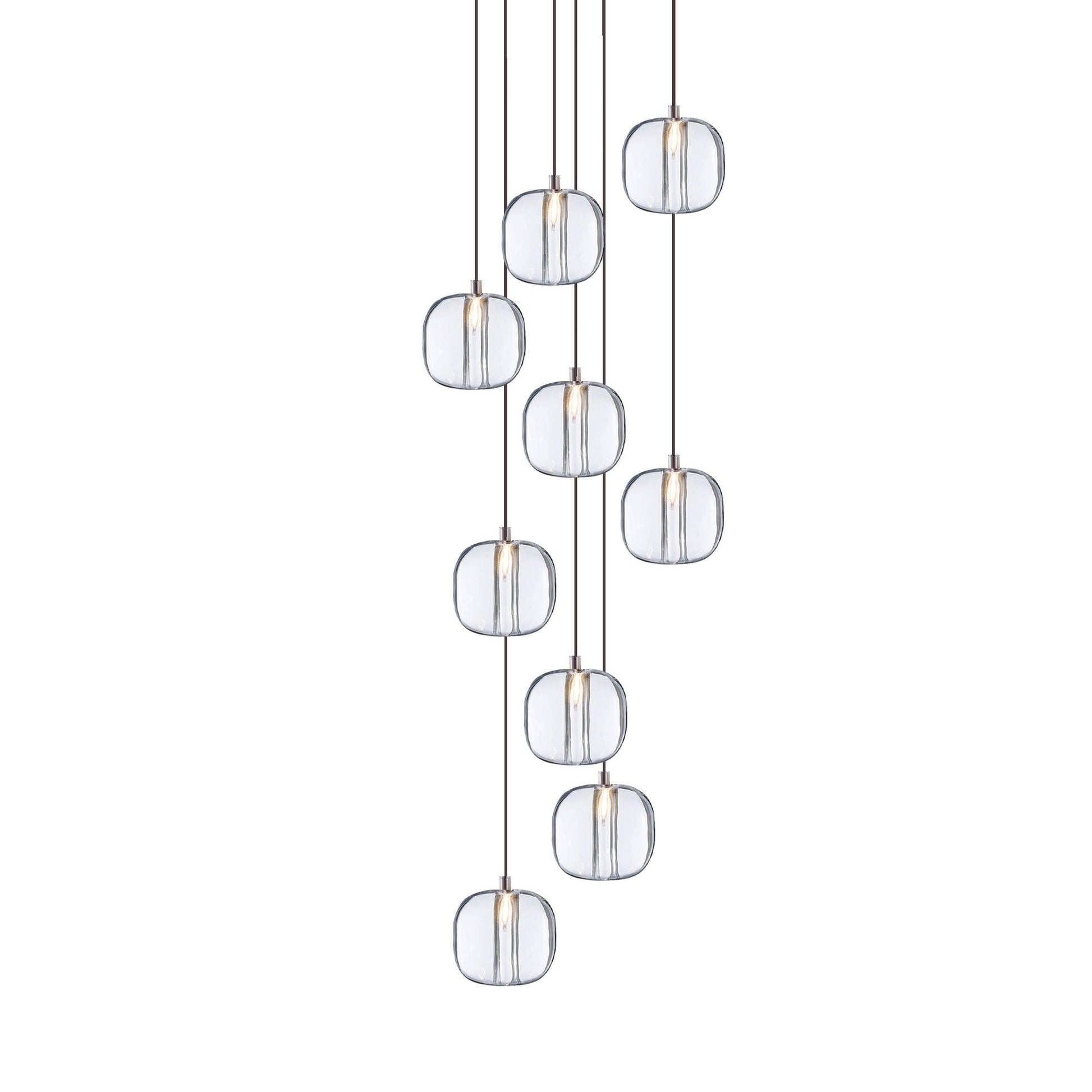 The Cubie Pendant Light is made of crystal that has been formed with rounded edges to create an organic shape. Due to its translucency, light emanates softly from the center of the fixture.