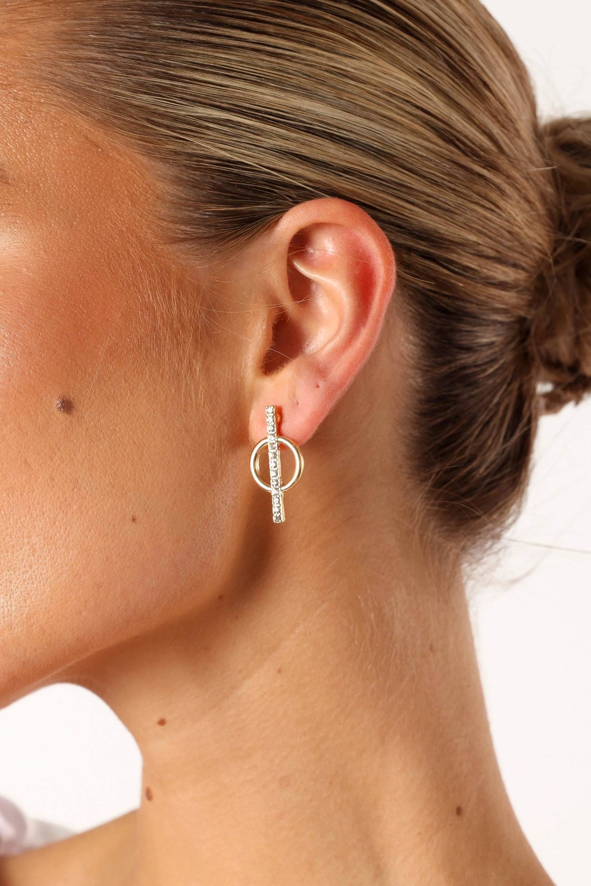Add sparkle with gold drop earrings featuring crystal embellishments and secure butterfly backs.