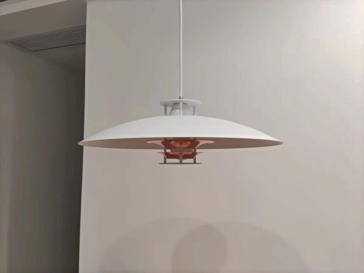 Finding beauty in simplicity, architect used lightweight white aluminum to create this generous ceiling light. The light hangs effortlessly from a single white cable, while its thin, disk-like shade illuminates with a bright glow, emitting a delicate and warm light.