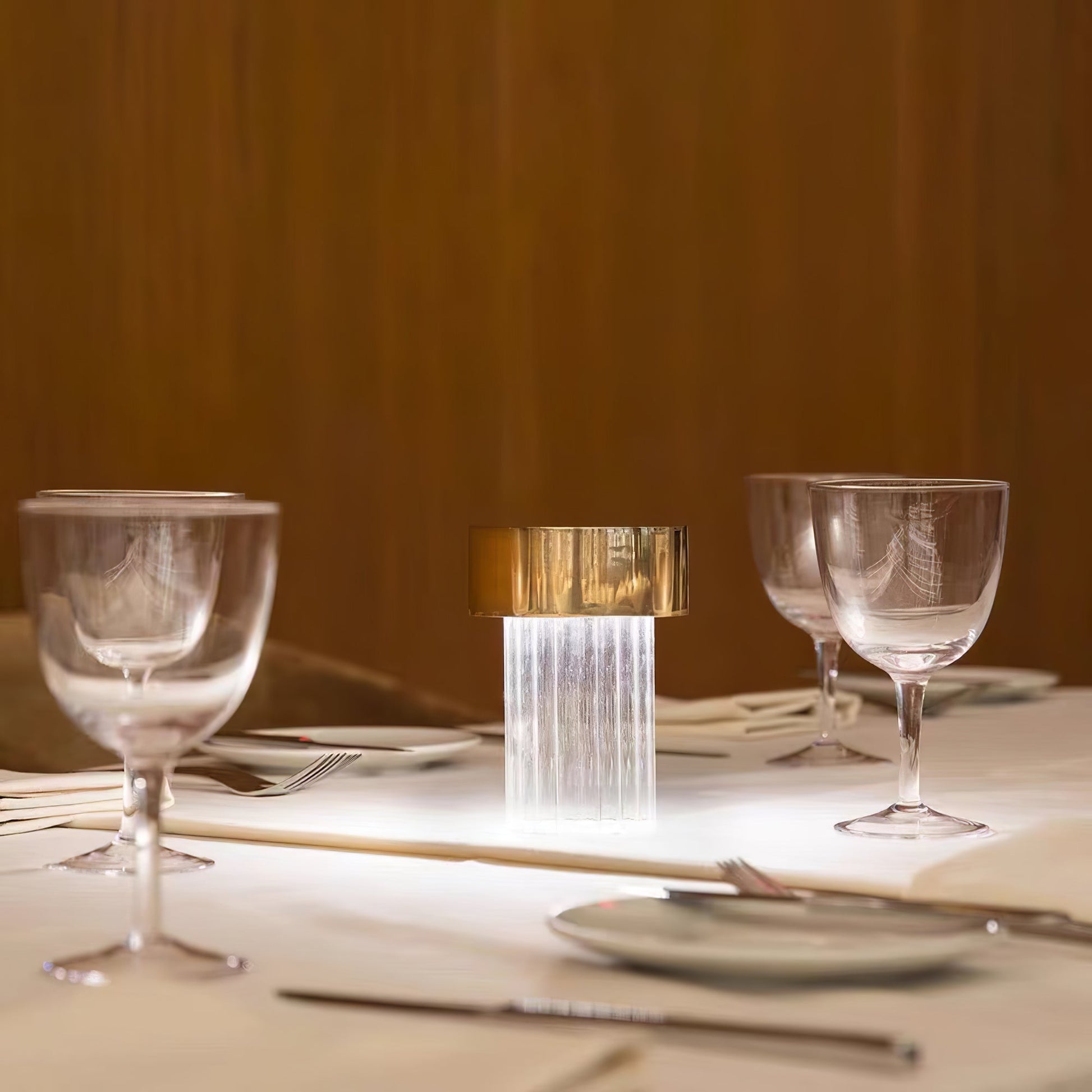 Efficiently illuminate any space with the Last Order Portable Table Lamp by Thewillowfiting. This rechargeable lamp diffuses light through a solid glass base, inspired by ancient columns. The sleek design and long-lasting battery life make it perfect for on-the-go use. Bring elegance and functionality to any room.