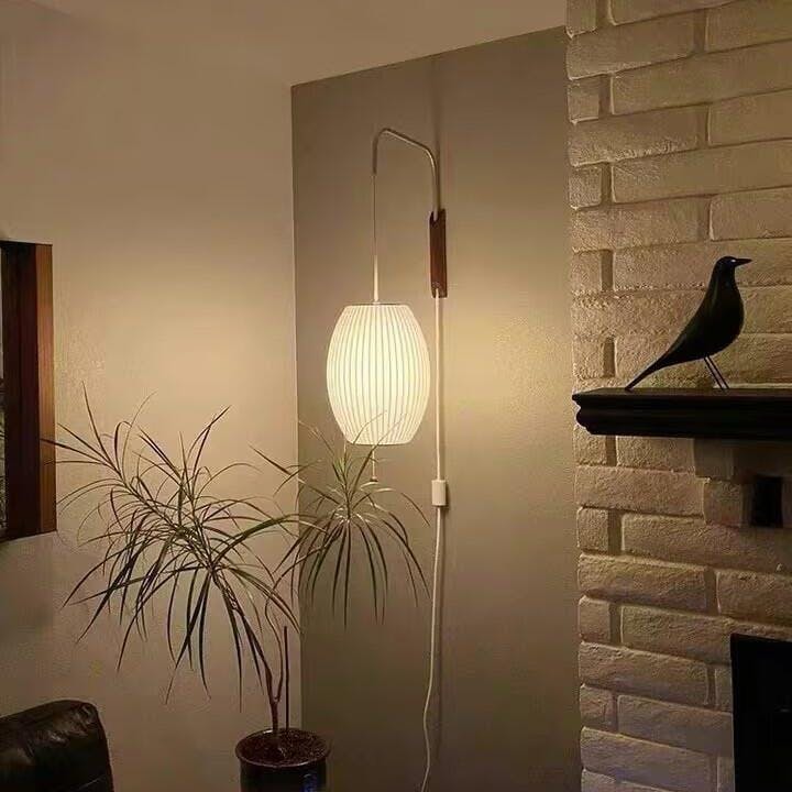The Ball Wall Sconce is designed with a swivel hinge and an adjustable plug-in cord, allowing easy movement of the lampshade without readjusting it on the wall. In 1952, a set of Swedish hanging lamps were introduced into the American market, and George Nelson was impressed enough to want one for his office. Their expensive price prevented him from buying one, but also inspired him to design his own. The result was a series of lamps with elemental, spherical shapes like a rounded apple, an elongated cigar, and a shapely pear, among others.