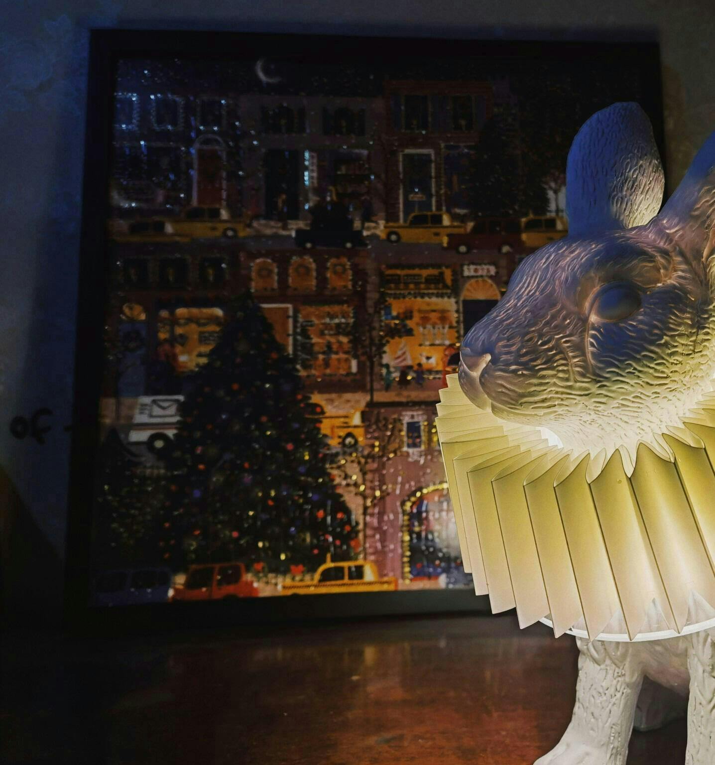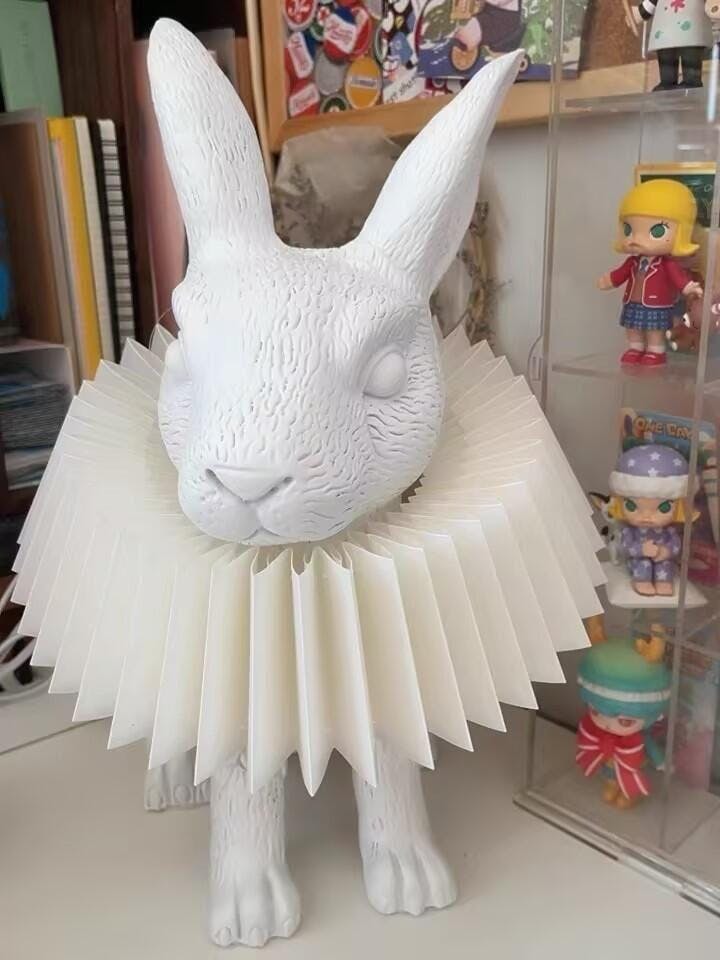 Another charming light. Inspired by Middle Ages costumes, surprisingly introduce ruffle collar details into their animal molding design. The streams of light through the paper, reflect the rabbit fur detail. Available in three postures, this beautiful rabbit lamp will surely create a warm atmosphere for your space.