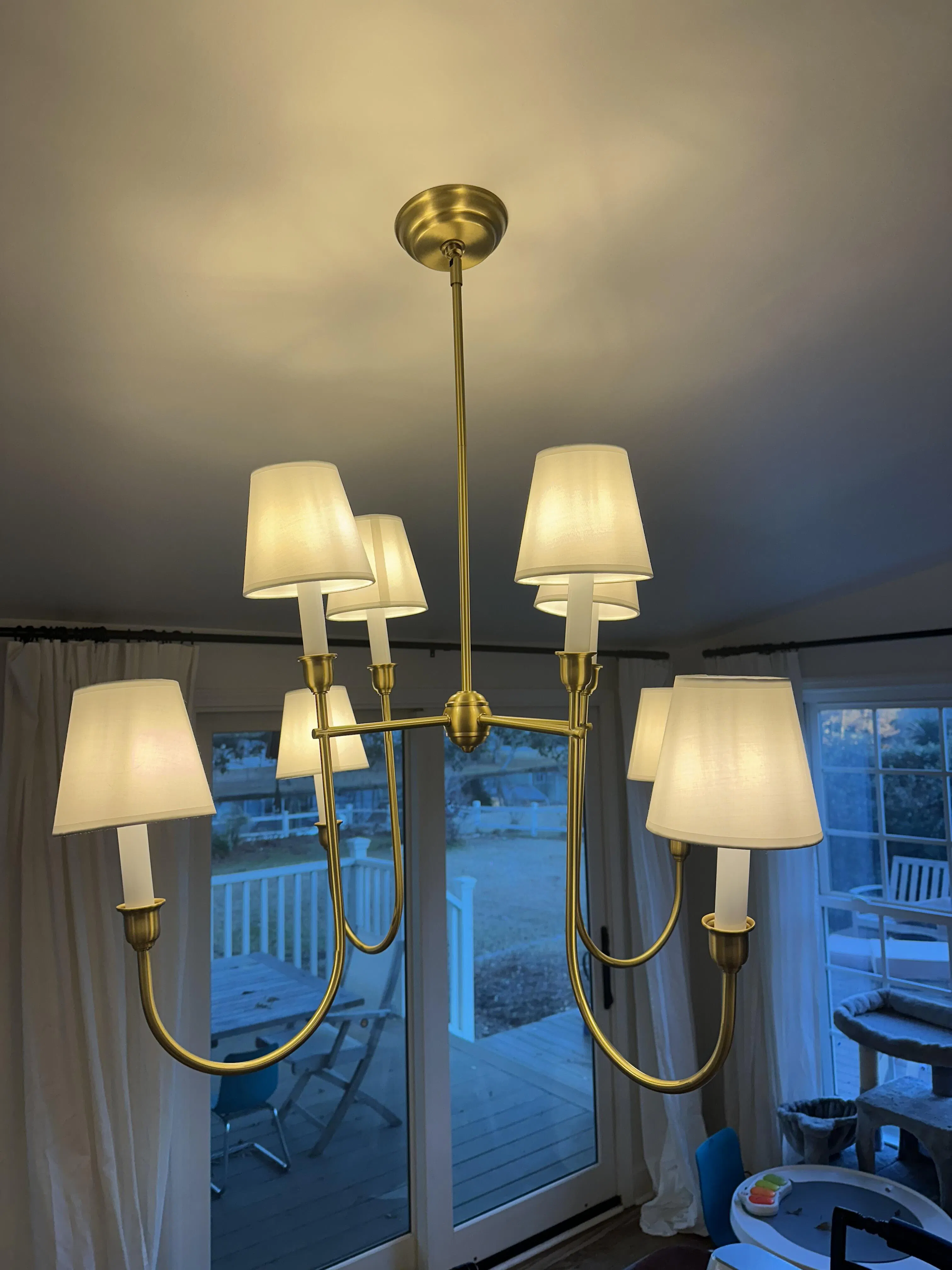 Please be advised that the Vendome chandelier in the online pictures and even the picture on the box it is shipped in is not the chandelier you get. The pictures show the same Vendome chandelier that Visual Comfort sells. This Vendome Chandelier is the knockoff you see sold in other places. That being said, the chandelier is good for the price. I like the color; it seems to be a good product and easy to install. And it shipped faster than expected. I am happy with the product; I just wish it was clear what I was buying.