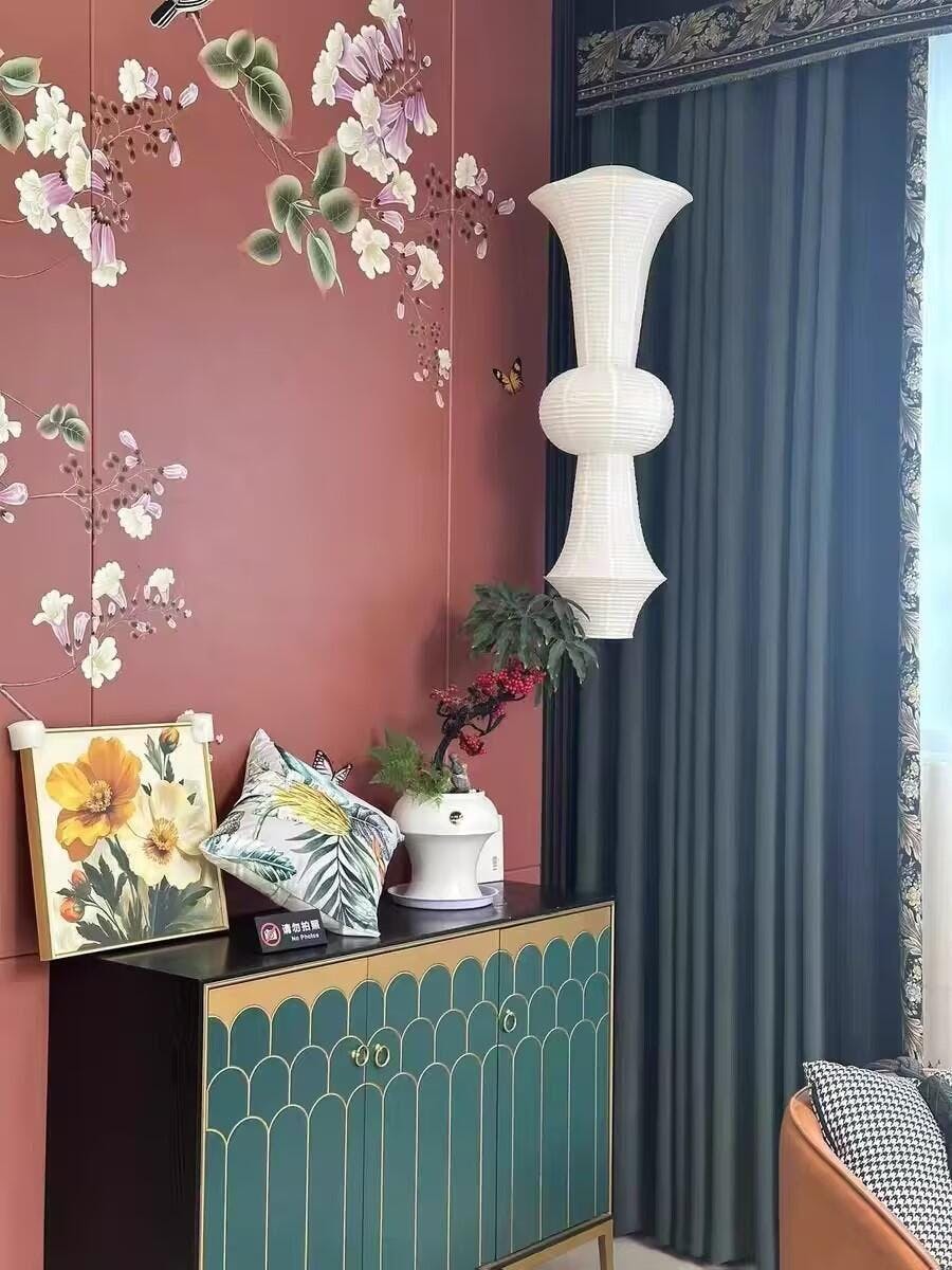 This light fixture is so much more beautiful than any picture could show. If you buy it you will enjoy it. Im so glad its the first thing people see when they enter my kitchen. Its so beautiful. Washi Paper E Pendant Swag Light truly stands out with its quality and design. It's an excellent choice for anyone looking to add a touch of elegance to their space.
